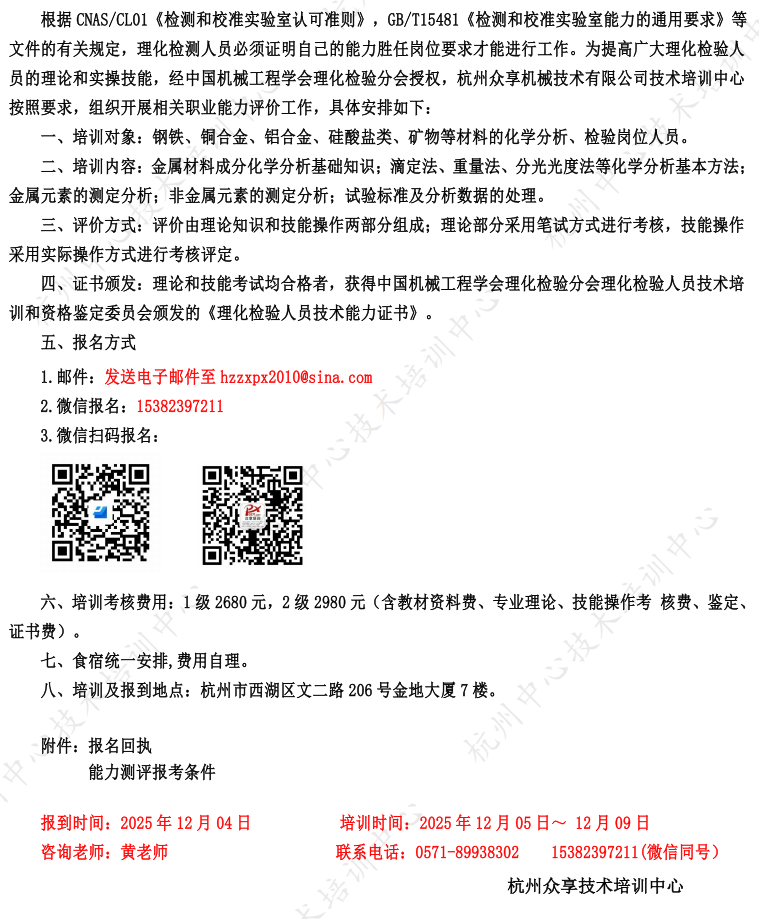 关于2025年12月开展化学分析(金属)人员能力评价工作的通知