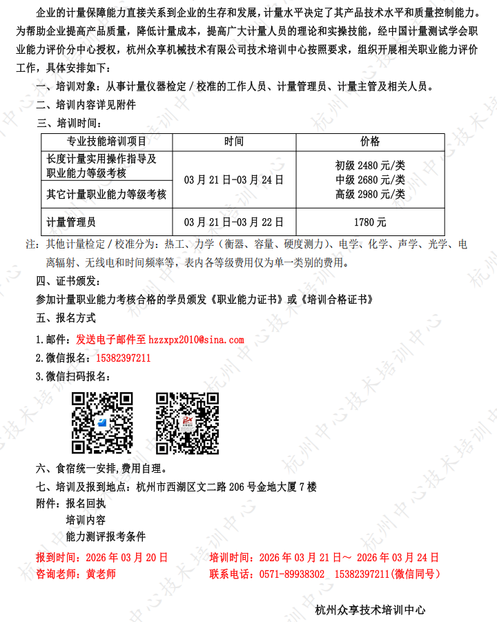 关于2026年03月开展计量检定/校准人员职业能力评价工作的通知
