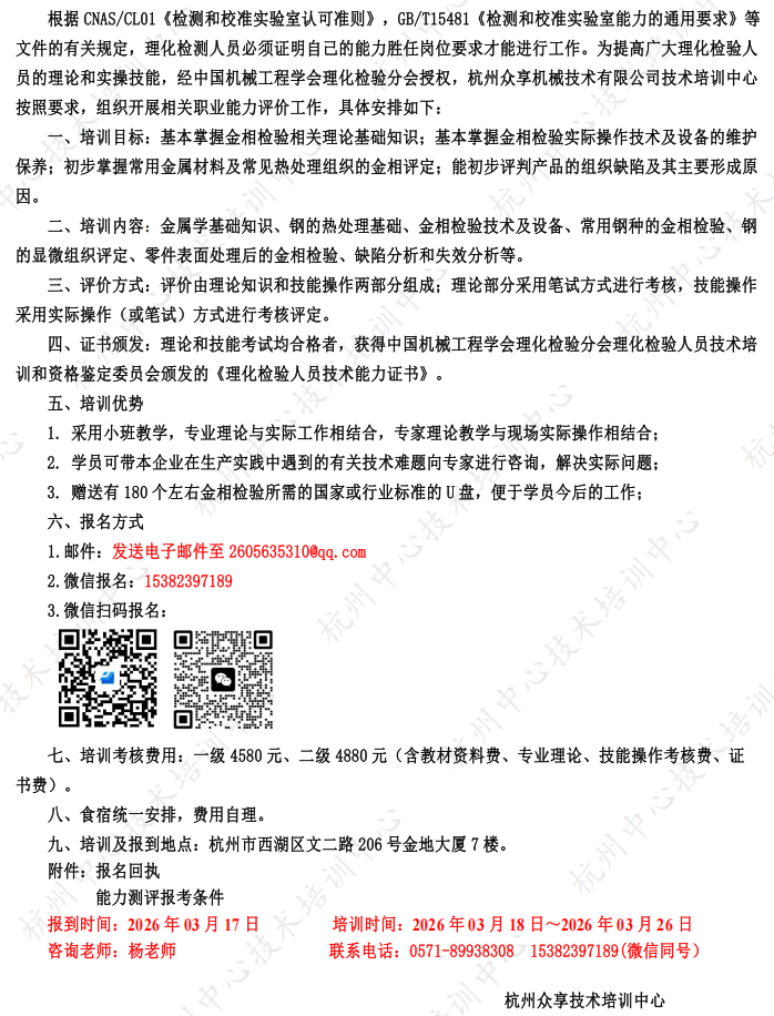 关于2026年03月开展金相检验人员职业能力评价工作的通知